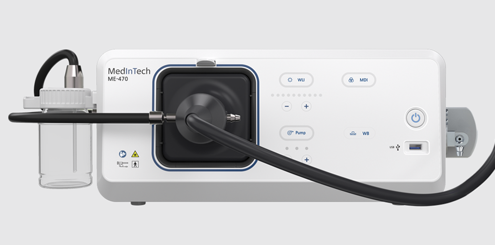 사용자는 White Light에 대해 총 10단계 광량 조절을 할 수 있고, Pump 압력은 총 3단계로 조절이 가능하며, White Balance 기능을 통해 영상 색감 조정을 진행할 수 있습니다. MDI(MedInTech Dynamic Imaging) 기능을 통해 미세 혈관 구조와 점막 표현을 선명하게 시각화합니다.