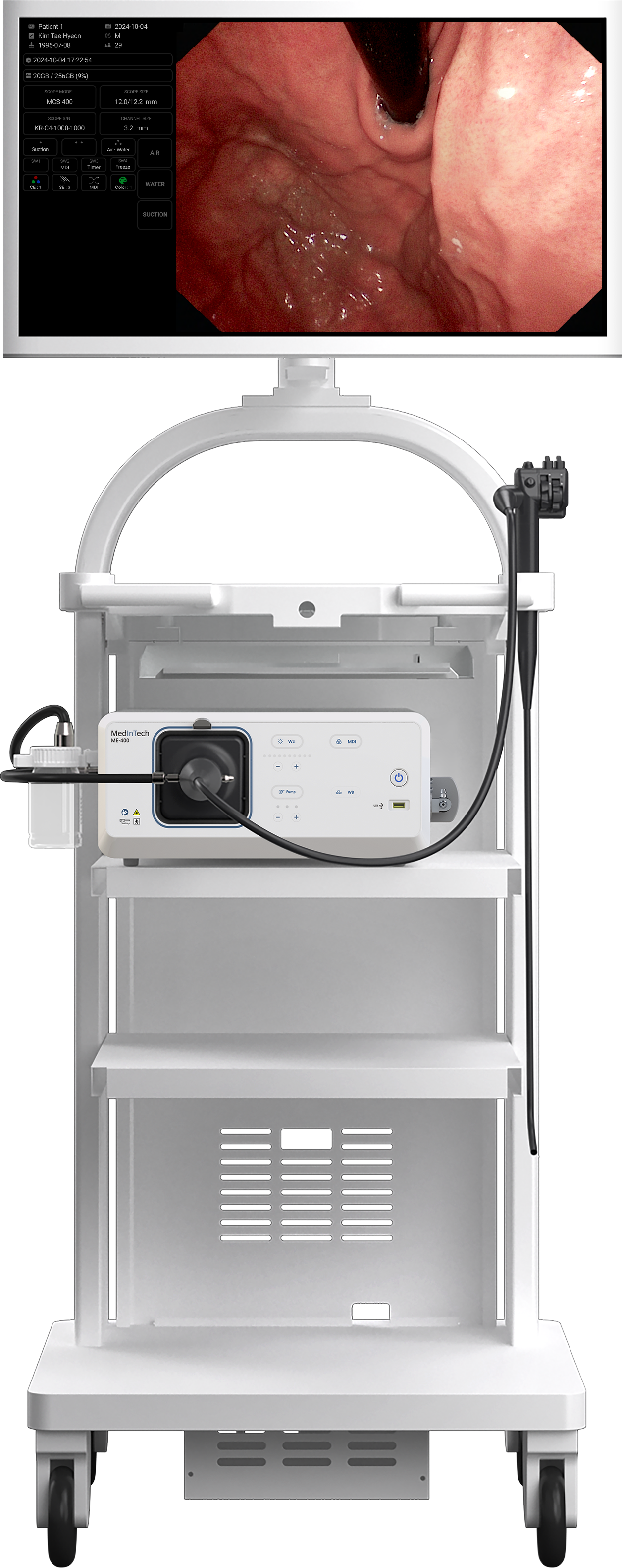 세계 최초의 전동식 내시경 이미징 시스템으로, 광원장치와 영상처리장치를 일체형으로 디자인하여 공간 효율성을 극대화했으며, 전동식 송기/송수/흡인 기능으로 의료진의 조작 부담을 덜어줍니다. 또한, 직관적인 전면부 인터페이스로 설계되어 의료진의 편의성과 진료 효율을 한층 더 높여줍니다.