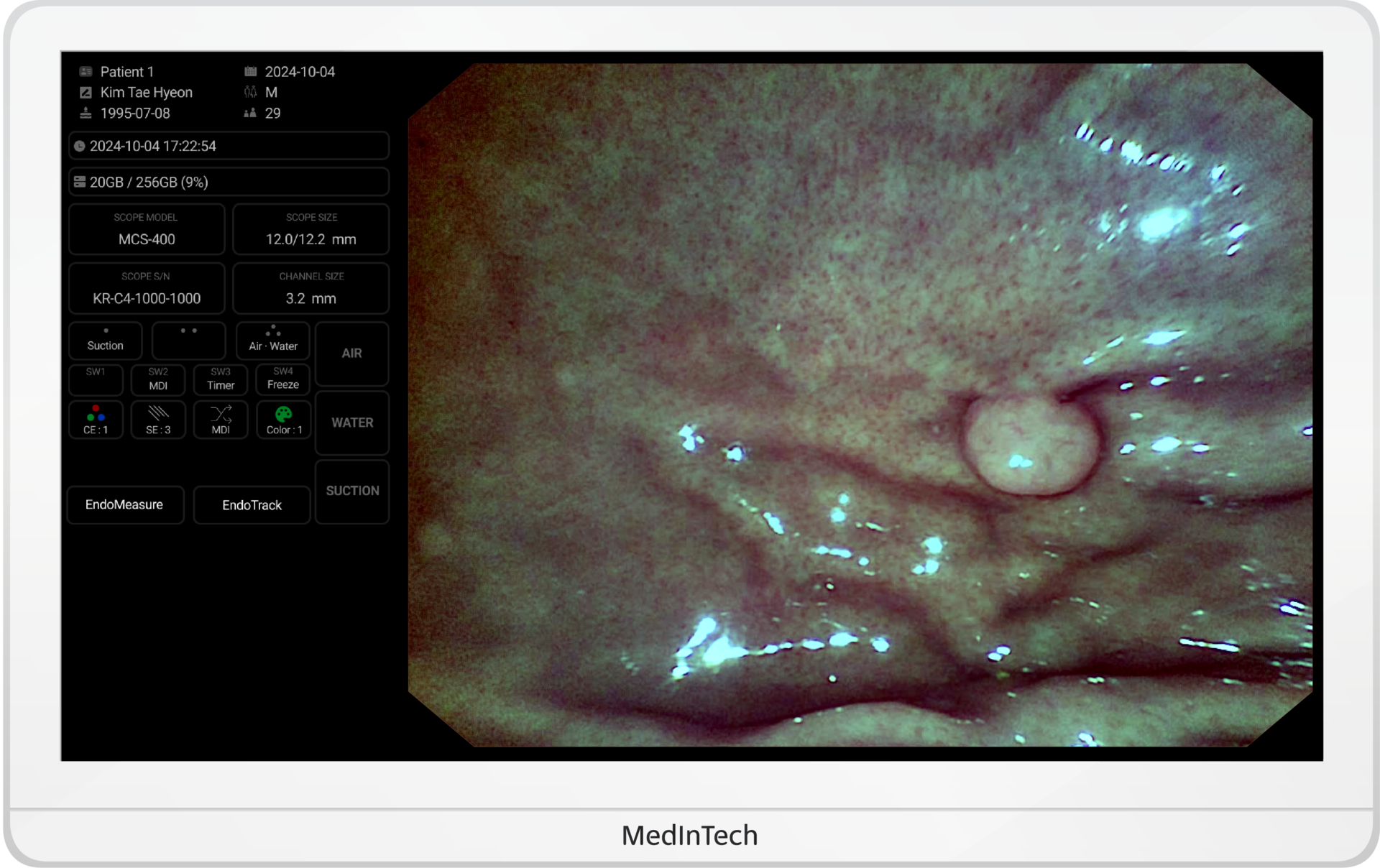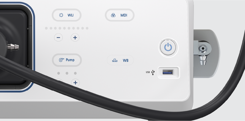 사용자는 White Light에 대해 총 10단계 광량 조절을 할 수 있고, Pump 압력은 총 3단계로 조절이 가능하며, White Balance 기능을 통해 영상 색감 조정을 진행할 수 있습니다. MDI(MedInTech Dynamic Imaging) 기능을 통해 미세 혈관 구조와 점막 표현을 선명하게 시각화 합니다.